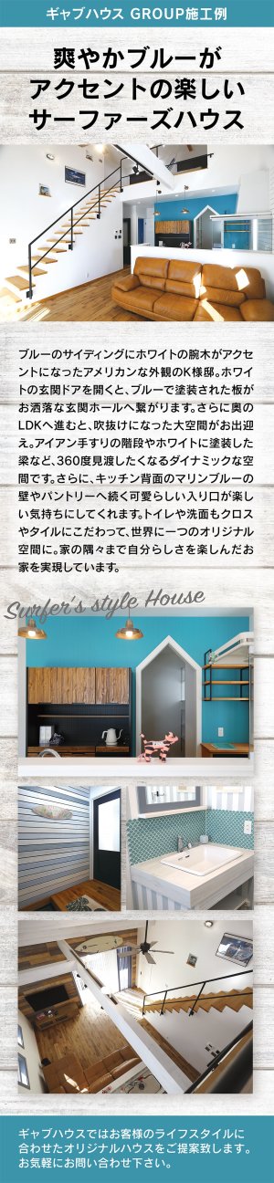 爽やかブルーがアクセントの楽しいサーファーズハウス